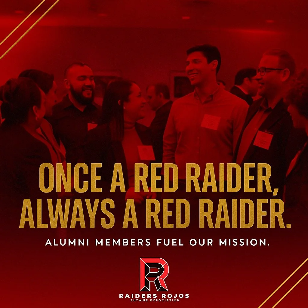 Raiders Rojos has a proud legacy of celebrating our heritage, uplifting future generations, and honoring the traditions that make Texas Tech special. By becoming a member, you join a vibrant network of alumni and friends committed to keeping those traditions alive. Your support helps us provide scholarships (over Half a million dollars given out since 2000 to first-generation students), host meaningful events like our Spring & Fall Convocations (which has hosted over 10,000 graduates since 2003 to celebrate their degree accomplishments with family and friends), and create spaces where our Raiders Rojos familia can connect, grow, and give back. Together, we ensure that the Raiders Rojos Alumni Association legacy continues for years to come.